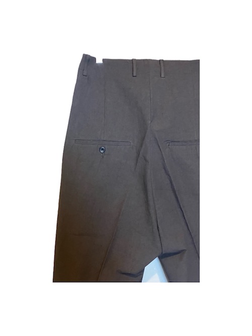 rdv o globeからBRUCE PA.をリリース。素材には,コットンのドビークロスに後染めを施しております天日干しにより自然なシワ感となりドライな手触りが特徴です。 トラッドな印象ながらもロークロッチのデザインに加えヒップ周りにゆとりを持たせ動きやすくしています。太めのシルエットが特徴のトラウザーは、裾口にかけて緩やかにテーパードを利かせています。レングスは9分丈くらいに設定しており様々なシューズとも相性の良いデザインとなっておりますのでぜひお試しください。