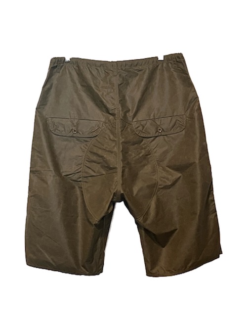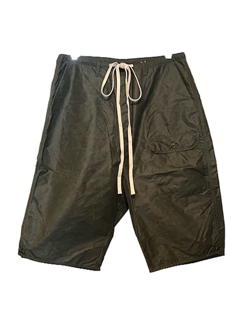 rdv o globeからPANTEHRS SH.をリリース。 素材にはナイロンタッサーエコパラフィン撥水加工を使用しております、ナイロン特殊加工を使用し天然素材ライクなスパン調の風合いと自然な光沢のある生地に環境に配慮した植物由来のコーティング加工を施した素材となります。ミリタリーライクなデザインとなりフロントのパッチ&フラップのポケットやヒップ部分は補強の意味で生地を重ねた機能的なデザインが特徴です、長めに設定されたドローコードや裾のボタンはアジャスターなどアレンジが効いております。ぜひお試しください。