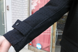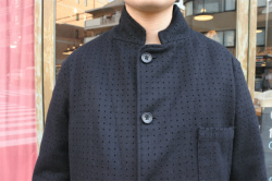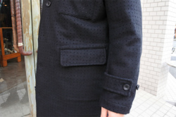 rdv o globeからKEVIN MA.がリリース。トップメルトンを使用した生地は糸が高密に編み込まれており、圧縮されているので表面は毛羽立ちが気にならずお使い頂けます。重厚感とハリ感のあるトップメルトンは通常のパンチング機械で開ける事が難しいので、特別な機械にて綺麗にパンチングしております。ロング丈のコートは一枚仕立てで軽く、隠しベルトを配備しウエストの調整が可能です。ぜひお試しください。