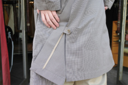 rdv o globeからGEORGE MA.をリリース。スーピマコットンを使用した素材はしっかりと高密度に織り上げているため、撥水要素もあり高級感のある仕上がりとなっています。ラグランスリーブでシンプルなステンカラーコートながらもボディ位置からゆったりとAラインに広がるシルエットです。背面にはアンブレラヨーク。余計なディテールを削ぎ落とし、ミニマムに仕上げてます。コンパクトな襟なので立てていただくのもオススメです。はぜひお試しください。