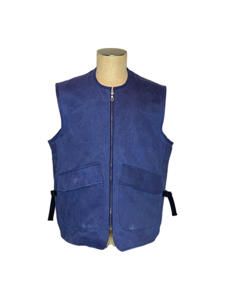 rdv o globeからTRISTAN GILET.をリリース。素材にはムラ感のある顔料染めを施したコットンツイルを使用しております経年変化も楽しめる素材感が特徴です。 ミリタリーライクなデザインでフロントはダブルジップ、サイドにはアジャスターもあり調整が可能となりますレイヤードスタイルに適したデザインとなっておりますのでぜひお試しください。