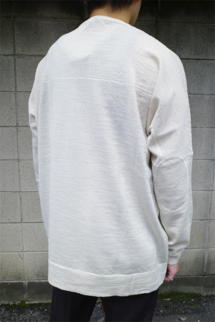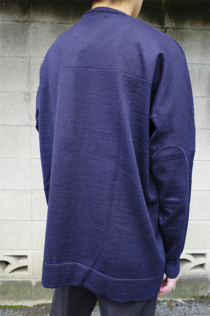 CASEY CASEYからCREW NECK JUMPERがリリース。 素材には、メリノウールを使用しております、CASEY CASEYらしいドロップショルダーと長めの袖丈になります。エルボーパッチが施されスポーティーでカジュアルなデザインが特徴です。 。 生地に洗いをかけることによって、その生地が活きてくるような生地選び。生地の繋ぎ方は、ベーシックな形を崩さないように、さりげなく繋ぐ。ボタンは、生地の雰囲気をより引き立たせるためのボタンを。着た時、動いた時の見え方まで計算し、作りこまれています。ぜひお試しください。