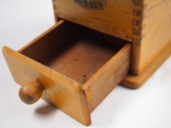 ドイツ製の『PeDe Dienes』木製アンティークコーヒーミルです。歴史あるドイツのメーカーで、ザッセンハウスと合併する前のブランドになります。フロントに鹿のロゴマークと【PeDe Dienes】のラベル、ハンドルに【Dienes】の刻印がされています。